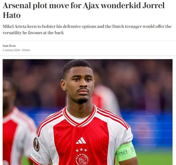 JRS直播网01月06日讯 据《电讯报》报道,阿森纳正在考虑引进阿贾克斯17岁后卫乔雷尔-哈托,他是一名多面手,可以轻松胜任中后卫或左后卫。阿尔特塔认为他能为阿森纳的防线提供十多年的稳定性。