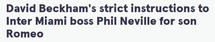JRS直播网9月22日讯 据英国媒体《镜报》报道,迈阿密国际主帅菲尔-内维尔在接受采访时表示,贝克汉姆告诉他不要特别照顾自己的儿子罗密欧,反而对他要比对其他人更加严厉。