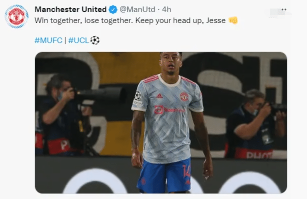 曼联官推写道:“赢球一起狂,输球一起扛,抬起头来,林加德!”