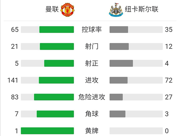 最终全场比赛结束,曼联4-1战胜纽卡斯尔!
