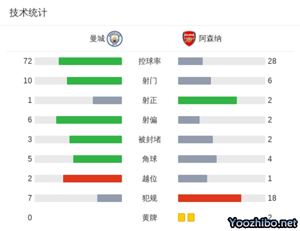 关键事件: 第67分钟,热苏斯拖延时间,裁判出示本场第一张黄牌。