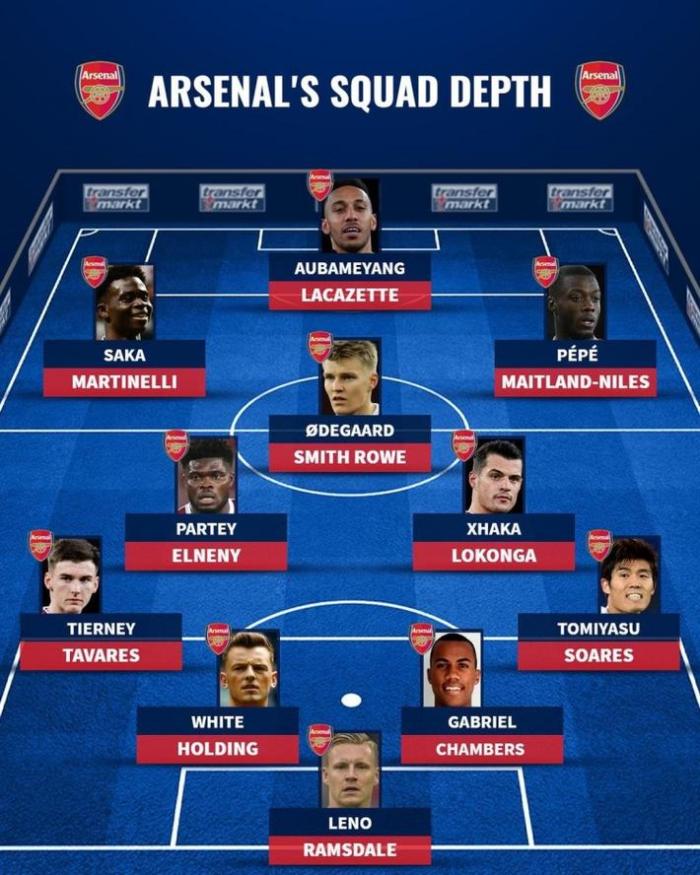 JRS直播网9月06日讯 德国转会市场盘点了阿森纳的阵容厚度,枪手可以排出两套实力强劲的阵容。