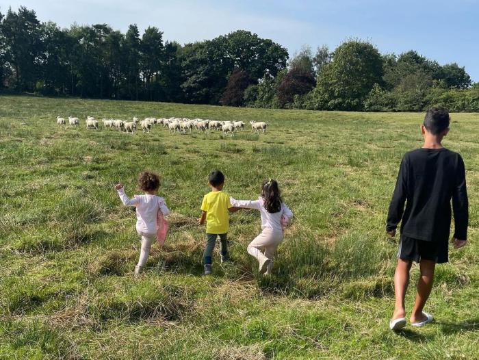 曼联给C罗租的别墅具体有多大?大到后院都可以放羊!C罗分享的照片显示,包括长子迷你罗在内,他的孩子愉快地在草坪上追逐一群绵羊,并爬上栅栏眺望外面更广阔的世界。