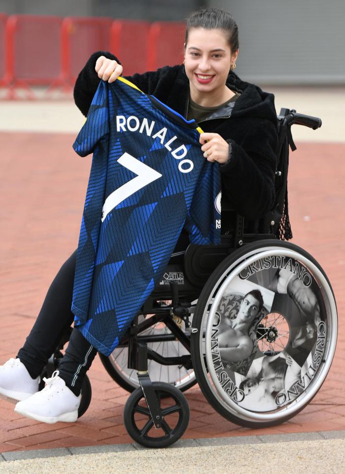 在梦剧场的球迷商店外,得到C罗的7号球衣的球迷眉开眼笑,一名残疾女球迷,甚至在自己的轮椅轮子上,都加上了C罗的海报。