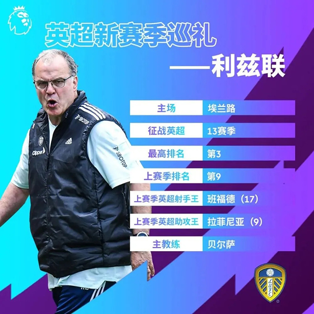 利兹联上个赛季的英超表现非常抢眼,球队展现出了一支强队所具备的攻击火力。在老帅贝尔萨的率领下,上赛季利兹联位居联赛第九位,这是自2002年以来,“白玫瑰”在顶级赛场上获得过的最佳成绩,尤其是贝尔萨的崇尚进攻的打法深受球迷的喜爱。