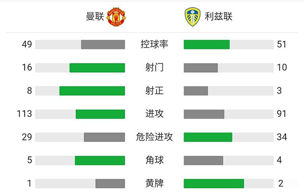 最终全场比赛结束,全场比赛结束,曼联5-1利兹联。