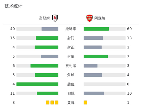 阿森纳1-2富勒姆 萨卡闪击难救主
