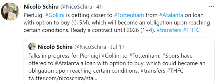 JRS直播网讯 据知名转会记者斯基拉报道,热刺接近租借签下亚特兰大门将戈里尼。