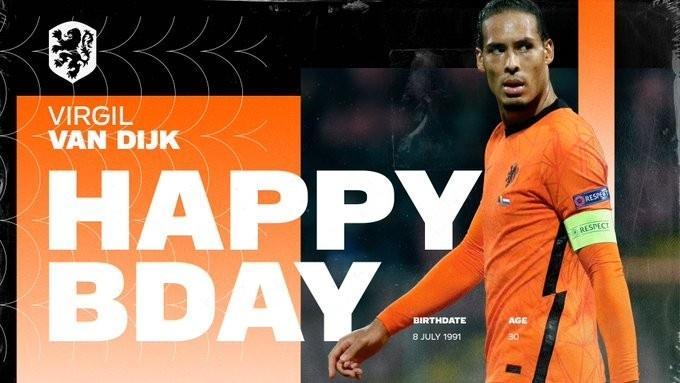 JRS直播网讯 利物浦中卫范迪克今天迎来了自己30岁生日,荷兰国家队官方发推祝他生日祝福。