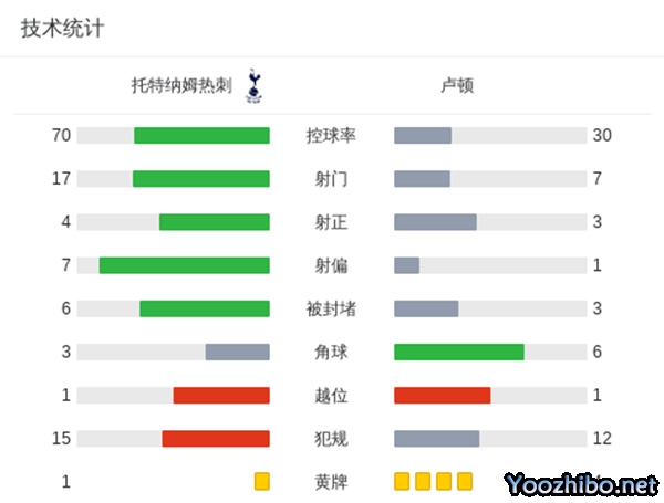 关键事件: 第3分钟,卢顿快速反击,巴克利分球禁区左侧,陈达毅低射破门,热刺主场0-1落后↓