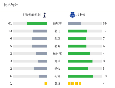 JRS直播网讯:北京时间12月23日英超联赛第18轮,托特纳姆热刺主场对阵埃弗顿。比赛第9分钟,里沙利松接布伦南助攻率先破门,第18分钟,孙兴慜补射再下一城,第82分钟,角球机会中,安德烈-戈麦斯不停球直接得分,最后一分钟,埃弗顿险些绝平,丹朱马射门击中横梁后反弹击中维卡里奥腿后弹出。最终比分热刺2-1埃弗顿。