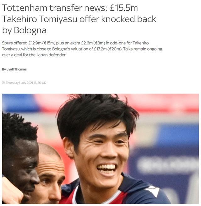 JRS直播网讯 据天空体育报道,热刺已经为博洛尼亚送上一份价值1550万英镑的报价,求购队中日本中卫富安健洋,但遭到对方拒绝。