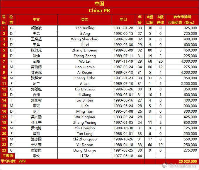 JRS直播网讯中国队迎战马尔代夫的23人大名单!大名单做了部分轮换,上两场的主力吴曦(身背1黄)、蒋光太、金敬道、唐淼暂时休息!四名球员李可、郑铮、谭龙、吉翔对位入选!