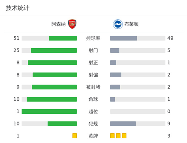关键事件: 第53分钟,阿森纳打破僵局!右路角球开到禁区前点范黑克头球后蹭后点热苏斯头球破门,阿森纳1-0布莱顿。
