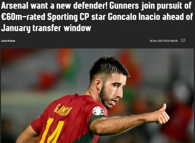 贡萨洛-伊纳西奥是葡萄牙体育不可或缺的球员,鉴于他的合同中有6000万欧元的解约金条款,他的转会费将非常高。伊纳西奥是左脚将,他将为阿森纳的左中卫加布里埃尔-马加良斯提供强有力的竞争。