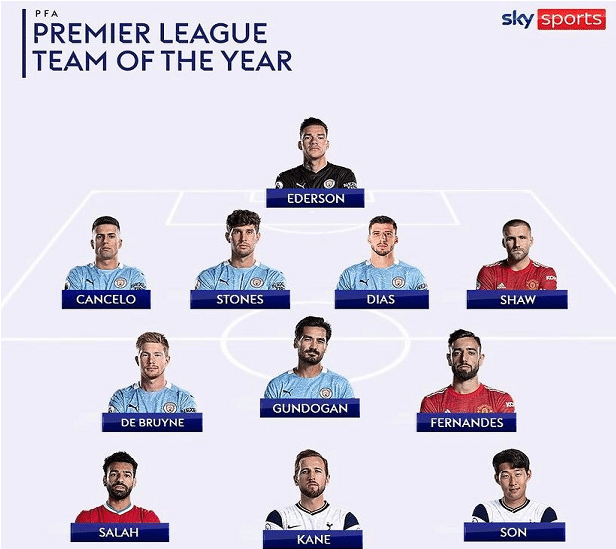 JRS直播网讯 英格兰职业球员协会(PFA)公布了本赛季英超最佳阵容,而这个最佳阵容和大部分球迷想象的一样,表现最好的球员全部入选了。而入选最佳阵容的11名球员中,6人来自曼城,2人来自热刺,2人来自曼联,1人来自利物浦。不知道,你喜欢的球星有没有入选赛季最佳阵容呢?好了,话不多说,一起看看英格兰职业球员协会评选的赛季最佳阵容吧!