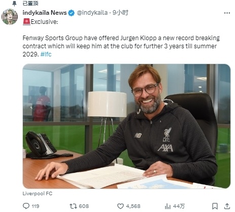 JRS直播网12月15日,来自知名英媒indykaila news的报道,英超豪门利物浦俱乐部,准备向自家主帅克洛普提供一份创纪录年薪的合同,留他到2029年夏天。
