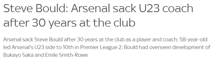JRS直播网讯 本赛季58岁的博尔德担任阿森纳U23主帅,率队获得联赛第10名,一队的萨卡和史密斯-罗都是他的弟子。