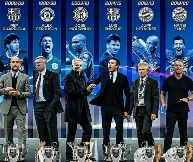 JRS直播网讯 足坛有一个成就叫做“三冠王”,这指的是在一个赛季内,带队拿到国内联赛冠军、国内主要杯赛冠军和欧冠冠军。而想要达到这个成就并不容易,到目前位置,足坛只有六名主帅做到了这一点,而这六个人都是足坛赫赫有名的主帅,分别是穆里尼奥、瓜迪奥拉、弗格森、恩里克、海因克斯和弗里克。除了这六名主帅,再也没人能够做到这点。