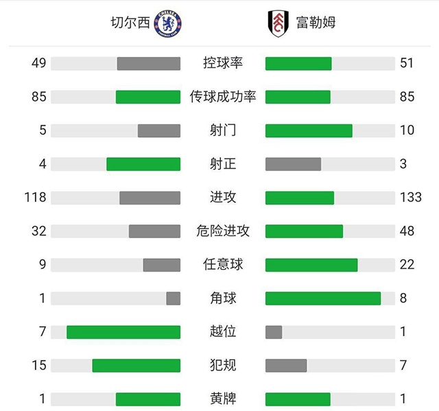 全场比赛结束,切尔西2-0击败富勒姆。