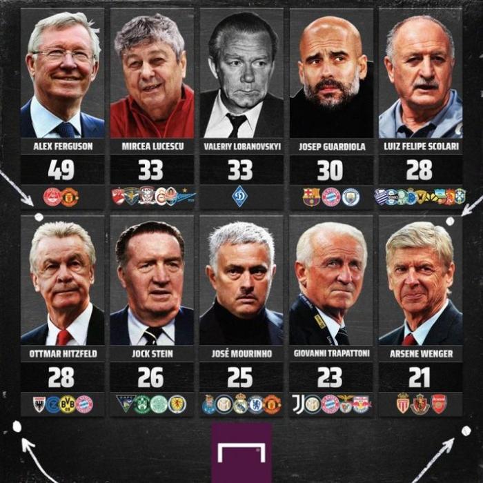 JRS直播网4月28日讯 据Goal统计,在主教练冠军数量中,弗格森以49冠排在首位,现役教练中排名最高的是瓜迪奥拉,以30冠排在第4。