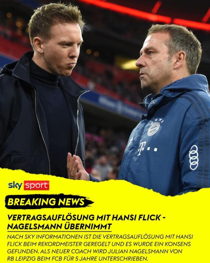 JRS直播网讯 北京时间4月27日,据德国天空体育报道,弗里克已经与拜仁解约,纳格尔斯曼在今日与拜仁签下5年的合约。