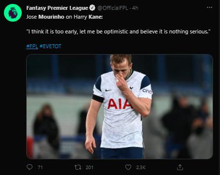 JRS直播网讯北京时间4月17日,英超第32轮,热刺客场2-2战平埃弗顿,凯恩疑似受伤被换下场。赛后穆里尼奥谈到了凯恩的伤情,他表示应对此保持乐观。