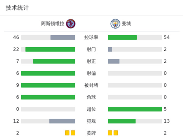 曼城0-1维拉 贝利制胜维拉狂轰22脚曼城仅2次射门