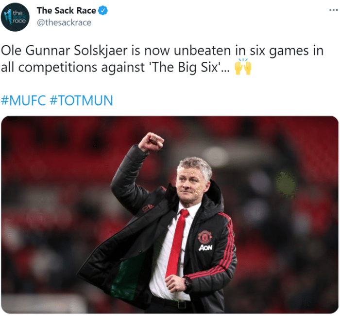JRS直播网讯根据数据统计,索尔斯克亚近6次在各项赛事中遭遇Big 6球队取得3胜3平的不败战绩。