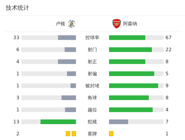 双方出场阵容: 阿森纳首发:22-拉亚、15-基维奥尔(64' 35-津琴科)、6-加布里埃尔、2-萨利巴、4-本-怀特、29-哈弗茨、41-赖斯、8-厄德高、11-马丁内利(64' 19-特罗萨德)、9-热苏斯、7-萨卡 阿森纳替补:1-拉姆斯代尔、17-塞德里克、76-沃尔特斯、20-若日尼奥、25-埃尔内尼、24-尼尔森、14-恩凯提亚 卢顿首发:24-卡明斯基、2-奥绍、15-门吉、29-阿马里伊-贝尔、6-巴克利、12-卡博雷、17-姆潘祖(88' 18-乔丹-克拉克)、45-道蒂(88' 26-贾尔斯)、11-伊莱贾-阿德巴约(61' 7-奥格本)、19-雅克布-布朗(61' 14-陈达毅)、30-汤森(62' 9-卡尔顿-莫里斯) 卢顿替补:23-克鲁尔、38-乔-约翰逊、8-卢克-贝里、43-扎克-尼尔森
