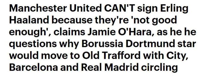 奥哈拉说:“曼联签不下哈兰德,因为他们还不够优秀。哈兰德为什么要去曼联呢?为什么?找不到理由。”