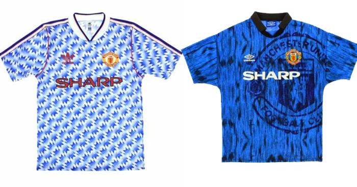 这款蓝色战袍同样是致敬90年代初曼联的一件旧球衣,不过领口有所不同,颇为类似2011/12赛季,斯科尔斯复出时曼联所穿的主场战袍。