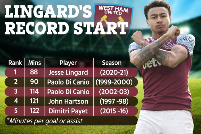 JRS直播网讯自从1月份离开曼联,加盟西汉姆后,大英帝星林加德表现优异,创造了球队的新纪录。数据显示,林皇平均88分钟就能打入一球或者助攻1次,超越名宿迪卡尼奥的20年前的数据,创造队史新纪录。