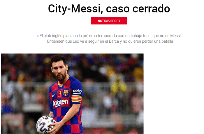 JRS直播网讯据《每日体育报》报道,曼城已经放弃在今夏引进梅西。