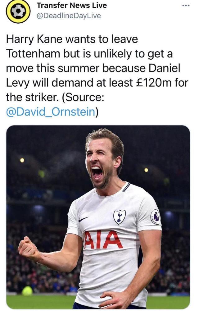 据悉,凯恩已经有了今夏离开热刺的计划,但由于自己是热刺的当家球星以及俱乐部最有牌面的球员,他不会公开承认离队的愿望。而作为知名商人的热刺俱乐部主席列维,尽管不会主动出售队内的当家球星,但如果凯恩执意离队,他也会愿意放行,不过列维给凯恩标上了1.2亿英镑的天价转会费。