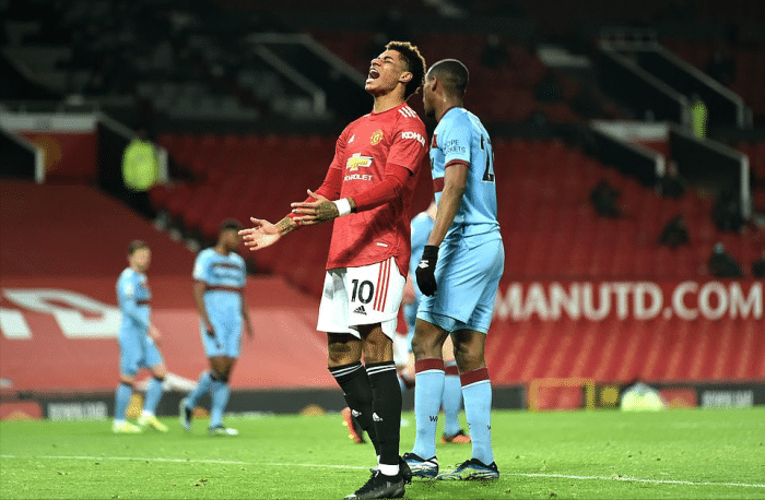 JRS直播网3月16日讯在曼联1-0击败西汉姆的比赛中,拉什福德错失头球破门良机,梅森·格林伍德则两次中柱,红魔最后凭借铁锤帮后卫克雷格·道森自摆乌龙,才取得胜利。赛后,索尔斯克亚戏称前锋的射门水平让他多了很多白头发。