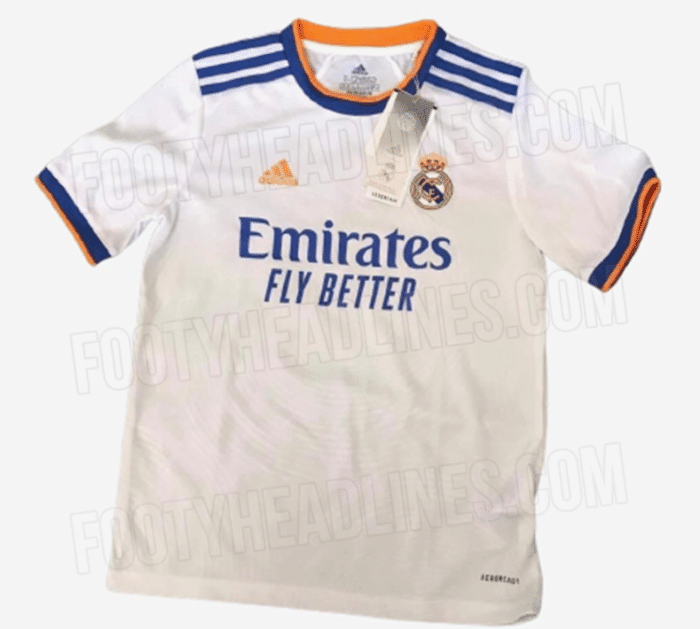 JRS直播网3月15日讯著名足球装备网站FootyHeadlines日前披露了皇马新赛季的主场球衣谍照,这套球衣采用白蓝橙色的搭配,获得了不少好评。
