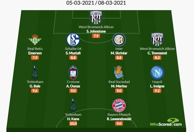 JRS直播网讯 北京时间3月9日讯欧洲五大联赛结束了新一轮的争夺,著名数据网站《Whoscored》也评选出了周最佳阵,凯恩、莱万领衔,贝尔、穆斯塔菲在列。