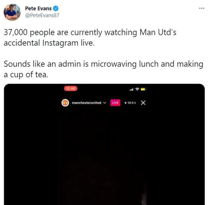 37000个人观看了曼联这次误开的ins直播,听起来管理员当时正在热午餐和泡茶。