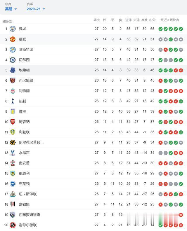 JRS直播网3月5日讯 英超又一个比赛日落下帷幕,曼城目前27轮65分大幅领跑。