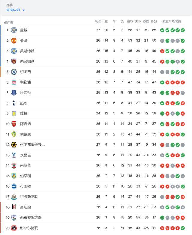 目前,曼城27轮20胜5平2负积65分排名英超第一位,多赛一轮领先第二名的同城死敌曼联多达15分,夺冠在望,球队最近状态火热,各项赛事已经21连胜。