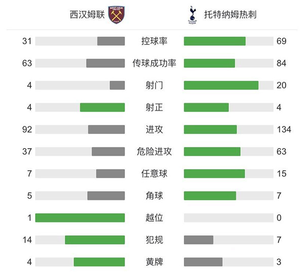 西汉姆2-1热刺 林加德建功贝尔中楣