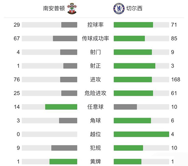 查看:南安普顿vs切尔西 全场录像技术统计: