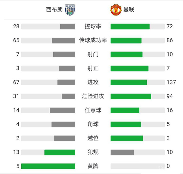 曼联1-1西布朗 迪亚涅闪击破门B费救主马奎尔中柱