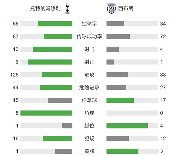 全场比赛结束,热刺2-0力克西布朗,结束三连败。