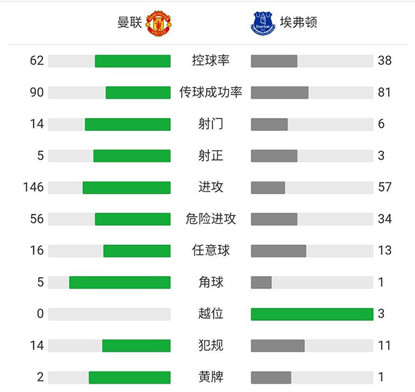 查看:曼联vs埃弗顿 全场录像技术统计: