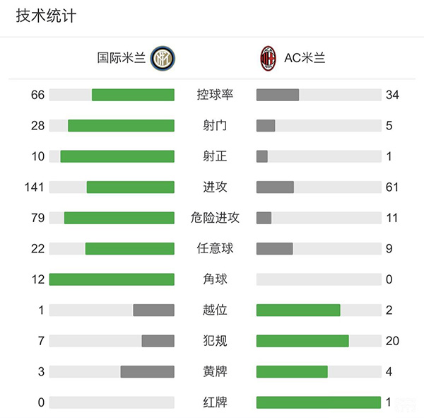 查看:国际米兰vsAC米兰 全场录像技术统计: