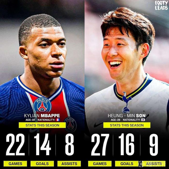 JRS直播网1月23日讯 本赛季开始之后,热刺全队的表现非常出色,而热刺队内的韩国球星孙兴慜的表现更是现象级的。而穆里尼奥不止一次盛赞孙兴慜是世界级的球星了。那么,孙兴慜到底算不算世界级的球星呢?近期,就有媒体拿孙兴慜和姆巴佩进行了对比,一起看看孙兴慜和姆巴佩到底是否有差距呢?好了,话不多说,一起看看两人的数据对比,看看谁更出色吧!