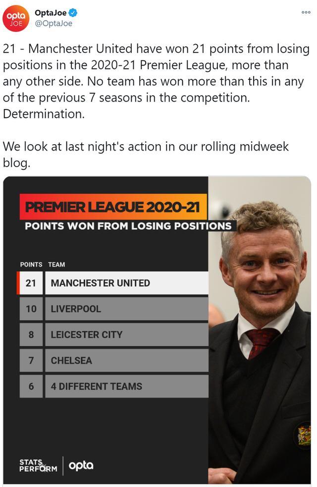 JRS直播网1月22日讯 据OPTA数据统计,本赛季曼联在英超联赛中率先丢球的情况下拿到了21分,遥遥领先于其他球队。