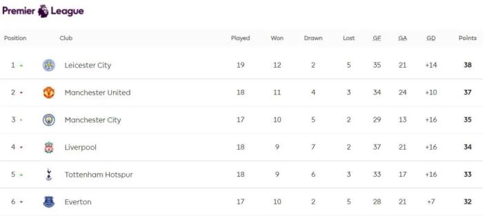 由于赛程前后的缘故,莱斯特城2-0击败切尔西后,暂时超越曼联排在英超第一位。如果曼城战胜阿斯顿维拉,积分也会暂时超越曼联,排在英超首位。但只要红魔拿下富勒姆,仍将在多打一轮的情况下坚守榜首。